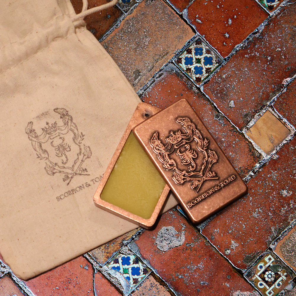 Encased in a luxurious tarnished brass slider, the fox and the crow is our unique version of a moisturizing lip balm. Infused with pink lotus floral wax and unrefined shea butter, this formula is rich in antioxidants, along with vitamins A and E. This firm, yet creamy balm coats your lips with intense moisture, while castor oil gives them a light shine. The result is a beautifully moisturized pout, and a case that is sure to make a statement wherever you pop it out.